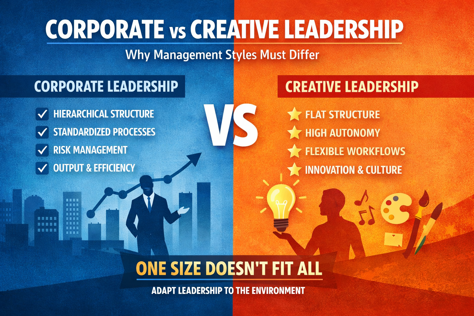 Leadership in Corporate vs Creative Organisations: Why One Size Doesn’t Fit All